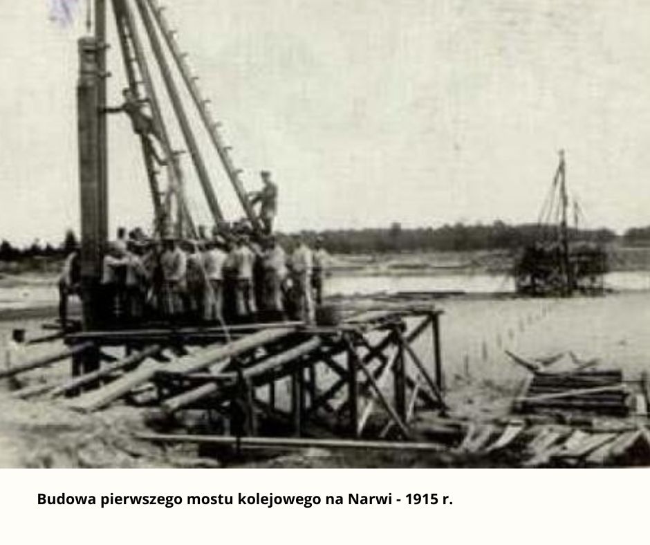 Początkowo układano tory szybko i prowizorycznie, wykorzystując luźne szyny i podkłady. Z czasem zaczęto stosować gotowe przęsła torowe z zapasów wschodnich twierdz, tzw. „przęsła patentowe”. Aby doprowadzić linię do Ostrołęki, zbudowano drewniany most o długości 100 m na rzece Narew. Kolejkę otwarto w sierpniu 1915 r. – początkowo obsługiwaną nie tylko przez parowozy, ale także przez… konie. Jednak jej wydajność szybko okazała się niewystarczająca. Dlatego już 29 lipca 1915 r. podjęto decyzję o budowie linii normalnotorowej Wielbark–Ostrołęka. Prace trwały w trybie dwuzmianowym, a całą 70-kilometrową trasę zbudowano w rekordowym tempie – w zaledwie 28 dni.